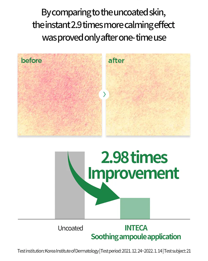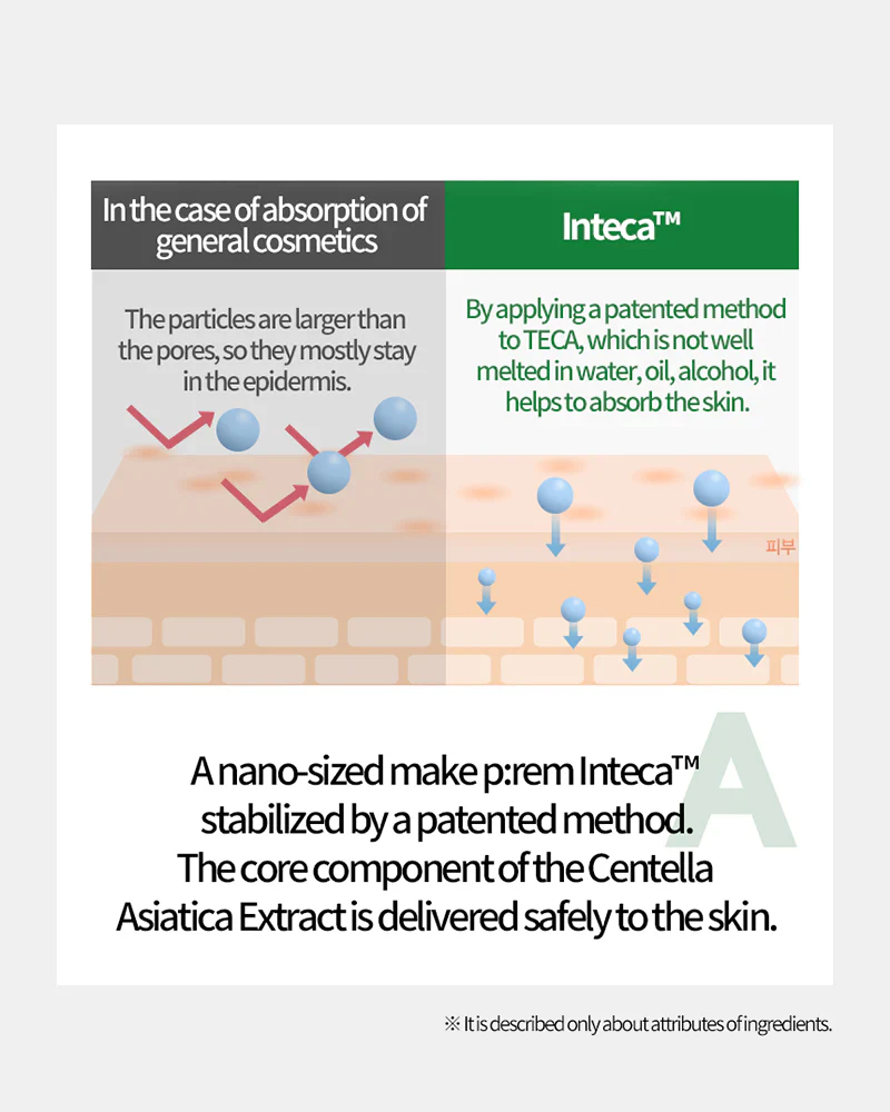 - 20,000ppm of Nano-sized patented Inteca™ delivers benefits of centella asiatica extract in a more efficient way.