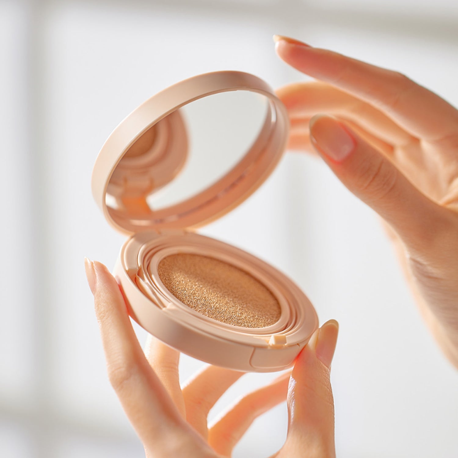 - 1. After taking an appropriate amount on the puff, adjust the amount on the cushion lid.