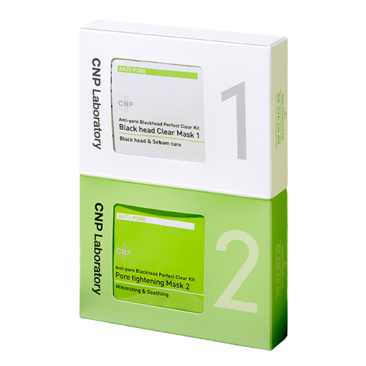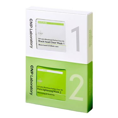 The CNP Laboratory Anti-Pore Blackhead Clear Kit is a 2-step pore care solution designed to effectively remove blackheads and minimize the look of pores. Step 1’s Blackhead Clear Mask gently dissolves and lifts away blackheads, excess sebum, and impurities without irritating the skin. Step 2’s Pore Tightening Mask soothes and refines pores, leaving skin smooth, clear, and refreshed. Dermatologist-tested and suitable for all skin types.