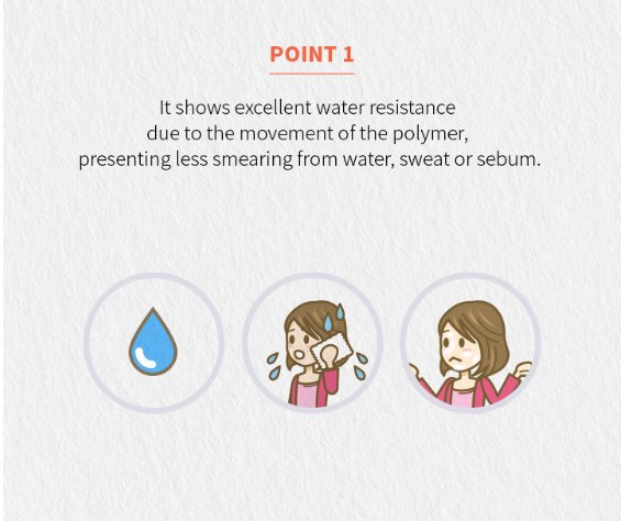- The water resistant coat polymer provides strong persistence against tears, sweat, water and sebum, creates vivid color.