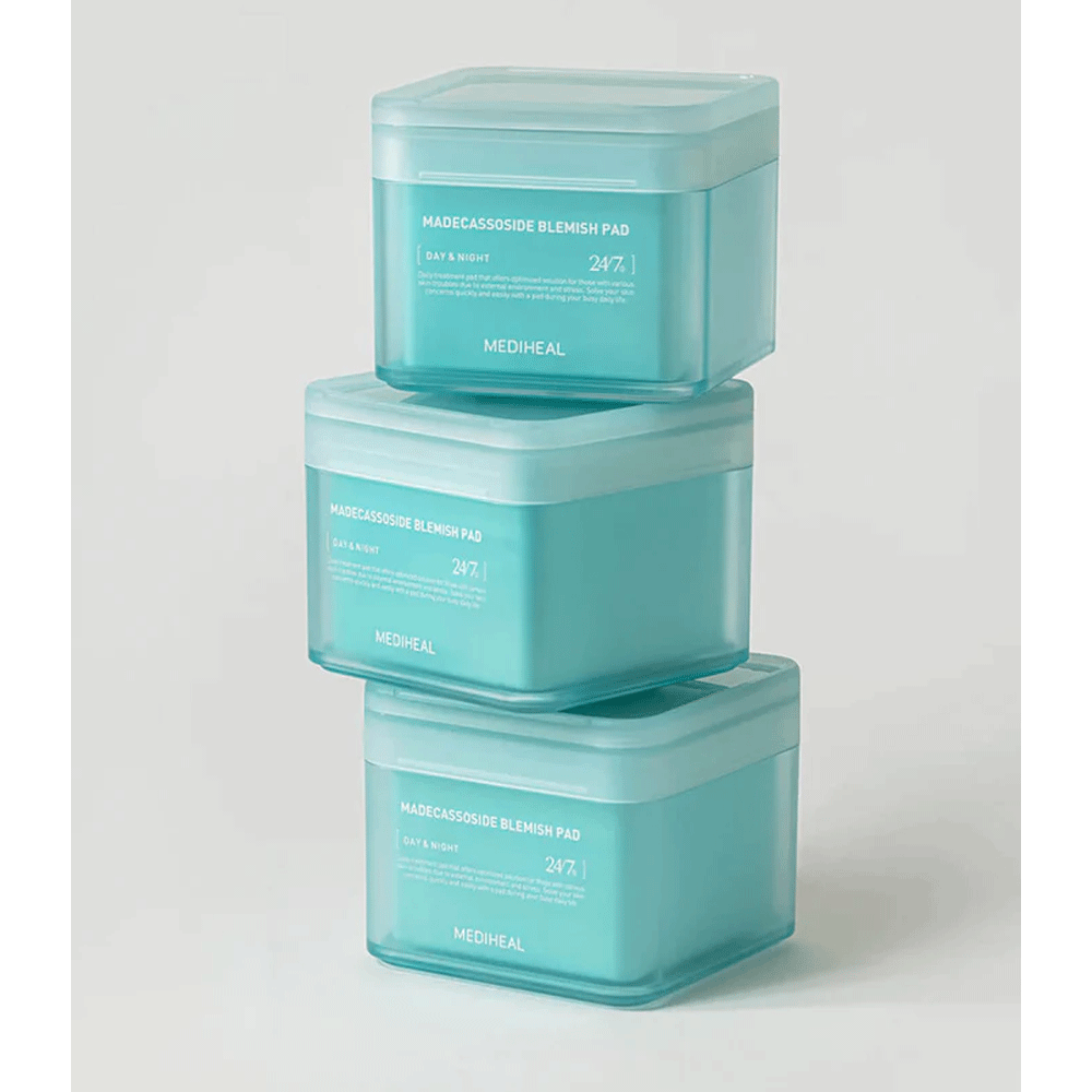 • Mediheal’s Madecassoside Blemish Pad is ideal used as a daily toner and as a 15-minute intensive blemish control treatment.