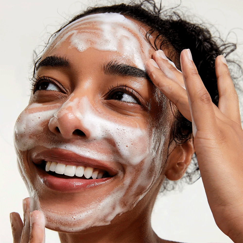 • Lather up an appropriate amount of product on wet palms and gently massage on skin.