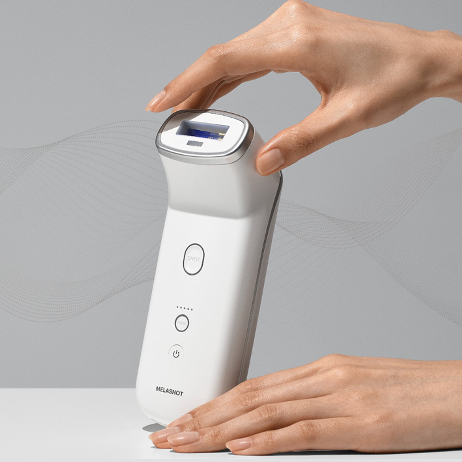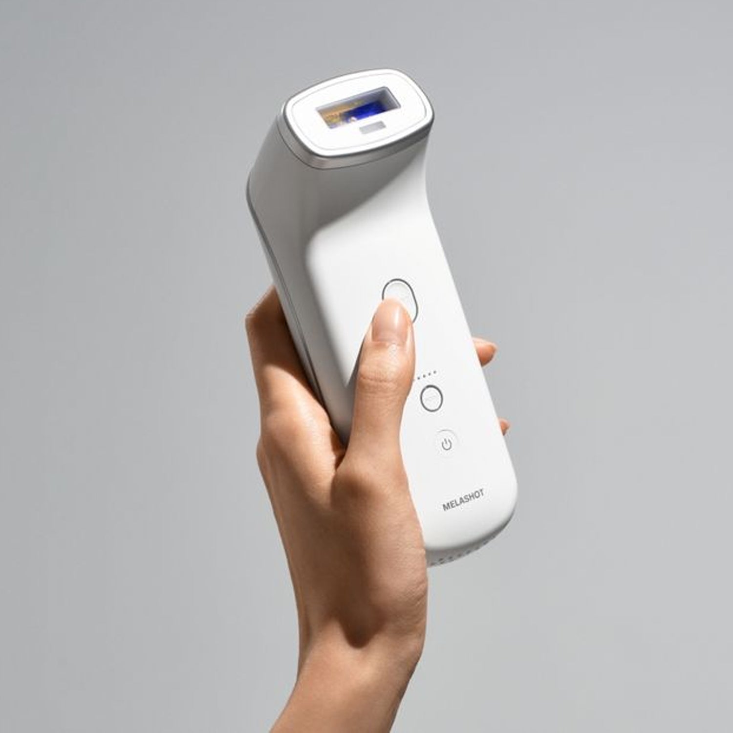 - 4. After placing the probe completely against the area requiring the Melashot and pressing the shot button, the light will go off and the shot will start.